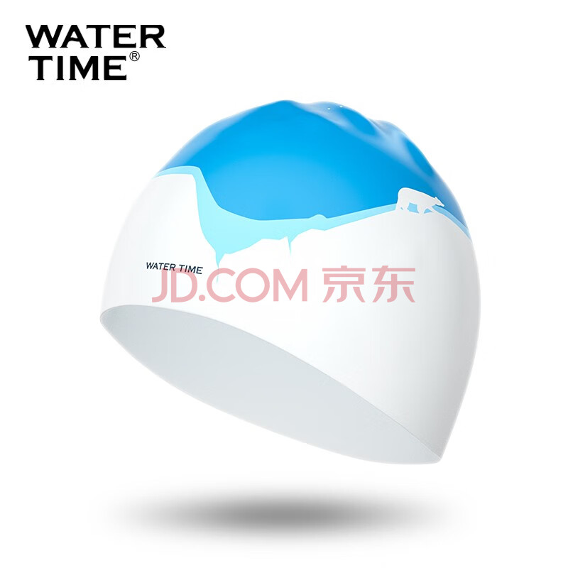 商品相册:WATERTIME/水川 泳帽女护耳硅胶抗氯长发时尚大号不勒头游泳帽冰川北极熊第