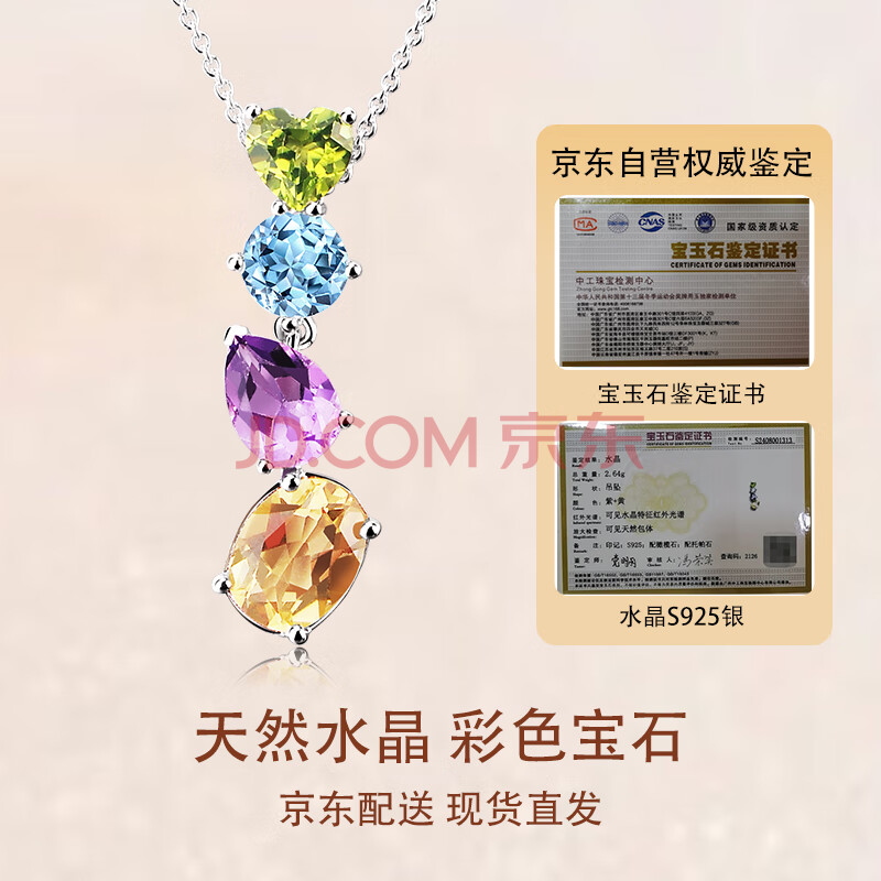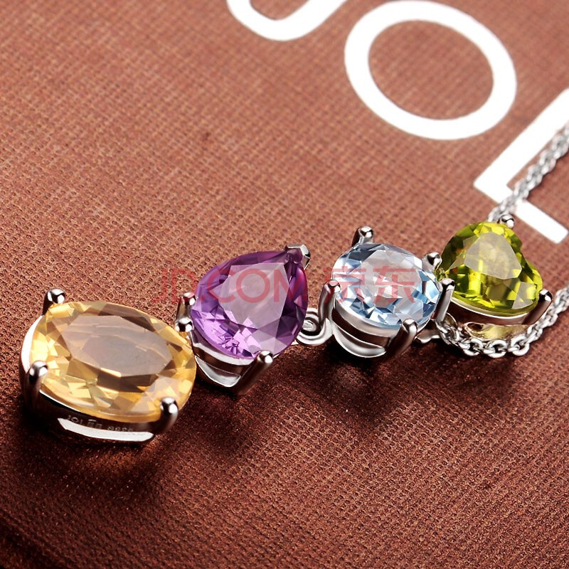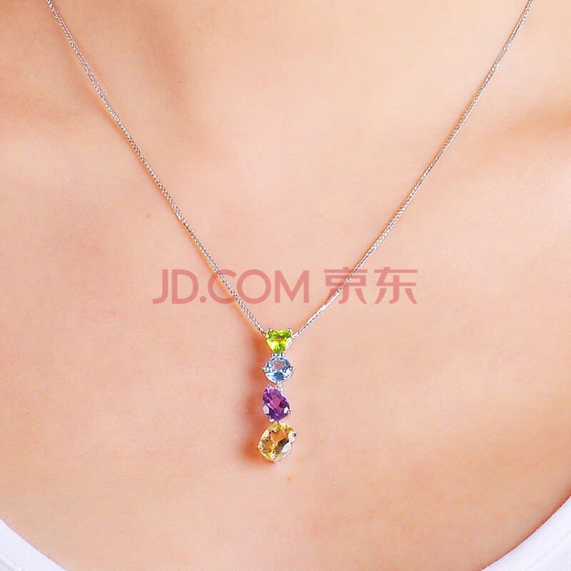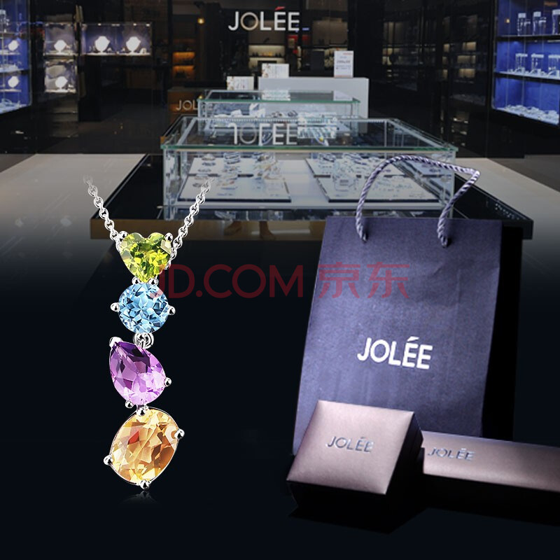 商品相册:JOLEE项链水晶S925银吊坠时尚彩宝托帕石锁骨链送女生新年礼物一物一证第