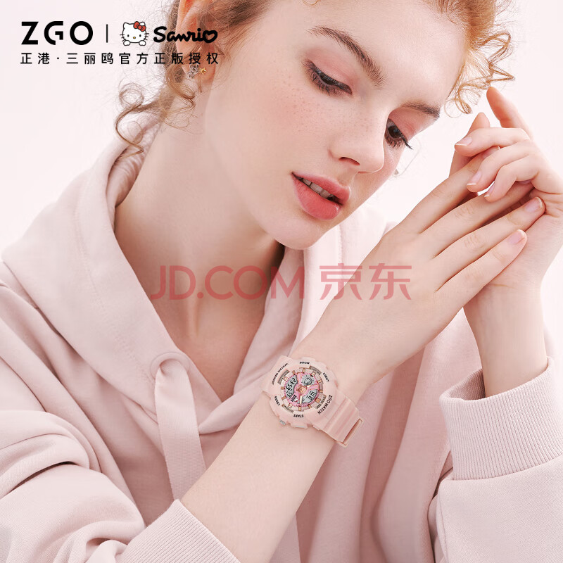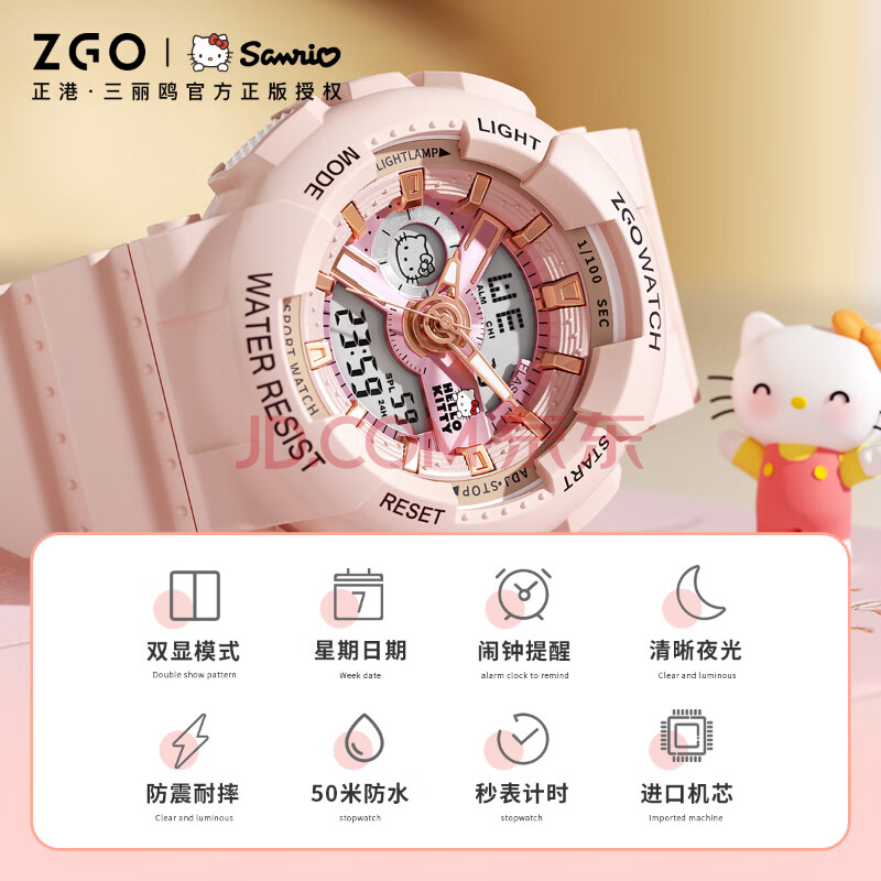 商品相册:正港(ZGO)x三丽鸥手表女学生电子表中学生少女儿童运动电子手表 8511樱花粉第