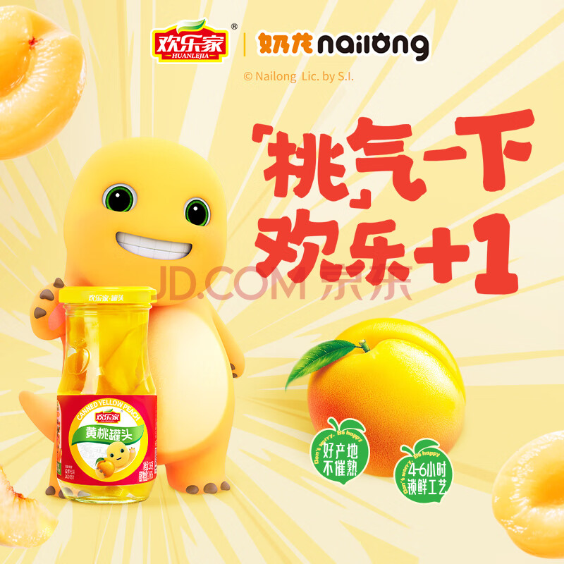 商品相册:欢乐家×奶龙 黄桃罐头256g*12瓶 新鲜水果罐头 礼盒送礼 休闲零食第