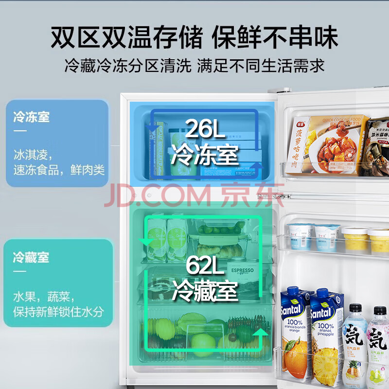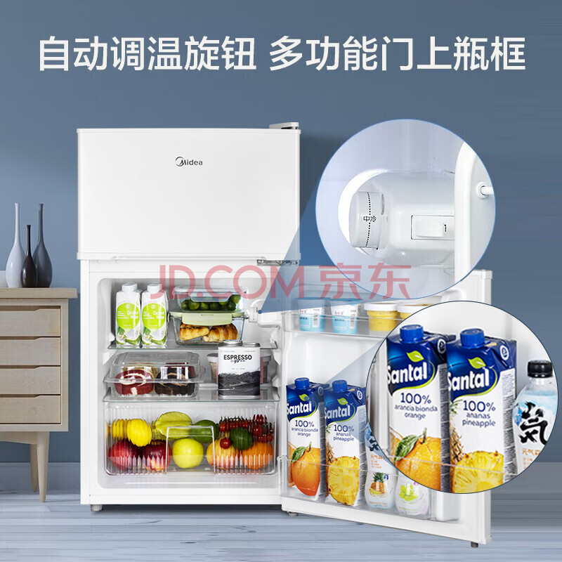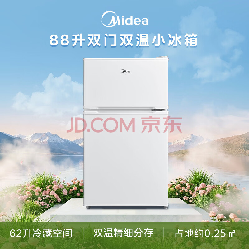 商品相册:美的(Midea)88L两门小冰箱白色迷你冰箱租房宿舍办公室小型家用双温可冷冻冷藏节能BCD-88CM第