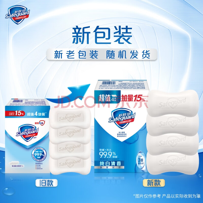 商品相册:舒肤佳香皂 纯白清香115g*4块皂 99.9%除菌 洗澡沐浴皂肥皂新旧包装随机第1张/共4