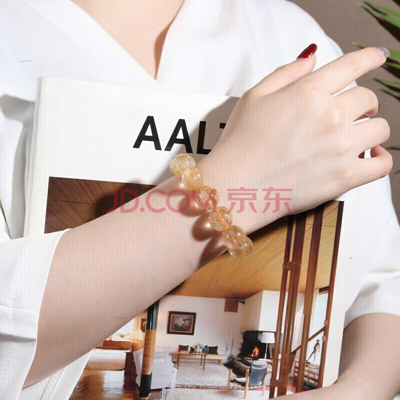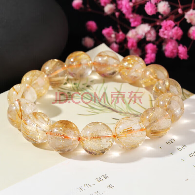 商品相册:石玥珠宝精品13-14mm天然金发晶手串本命年转运珠手链男女士款 水晶玛瑙第1张/共6