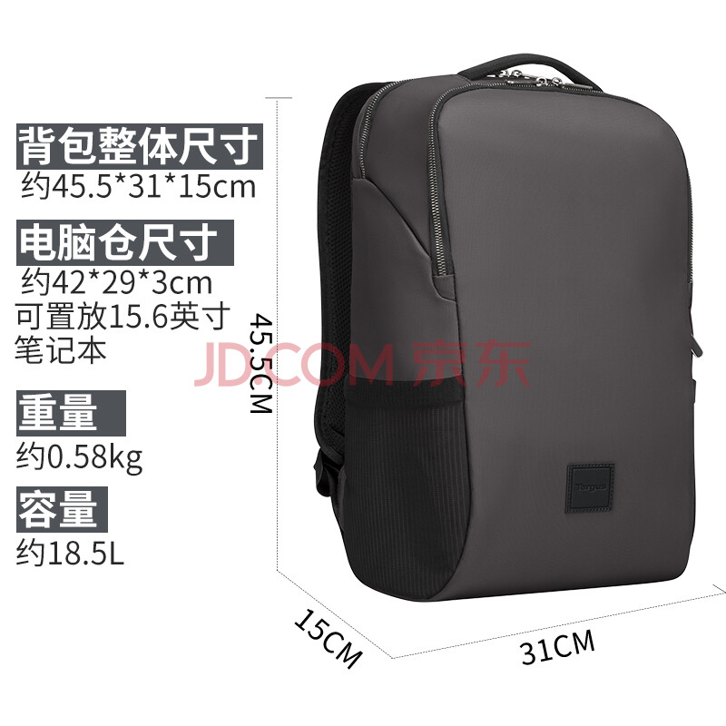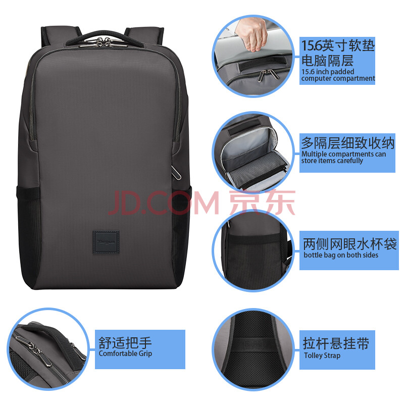 商品相册:泰格斯(TARGUS)通勤双肩电脑包15.6英寸背包书包商务潮流男女情人节 灰 594第