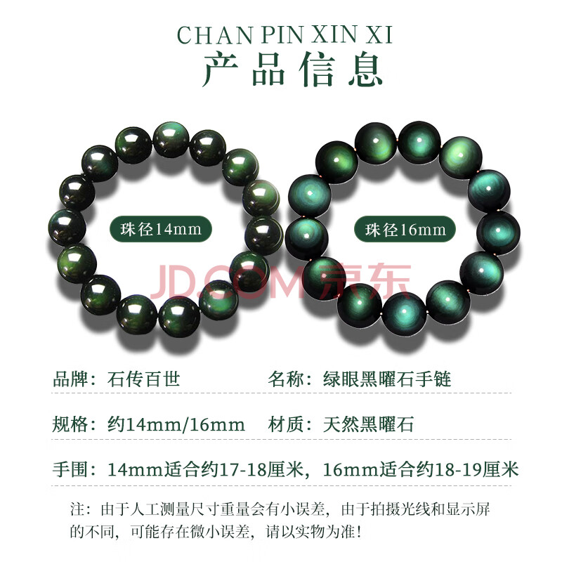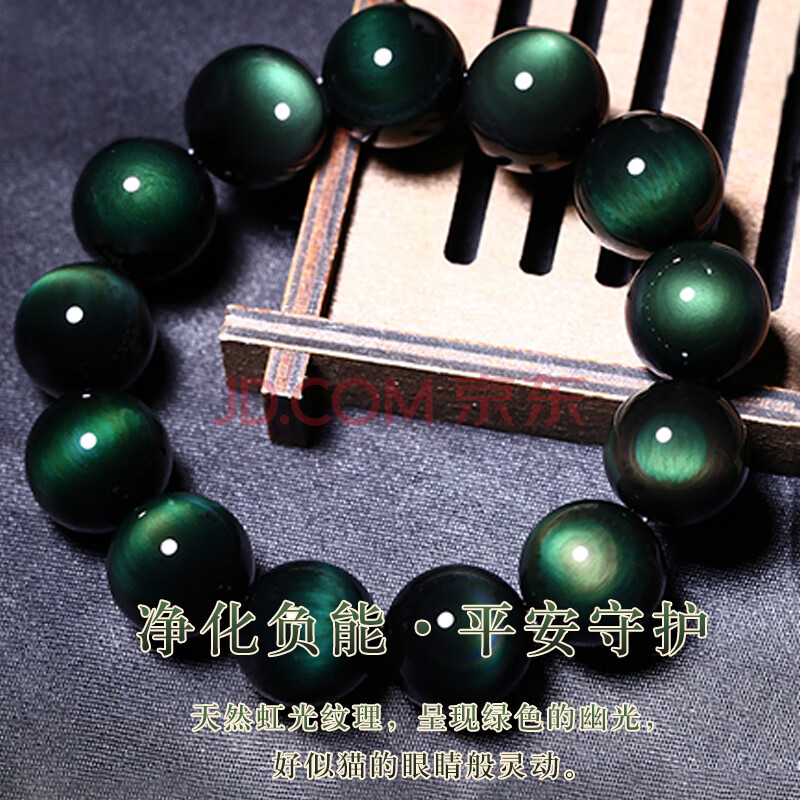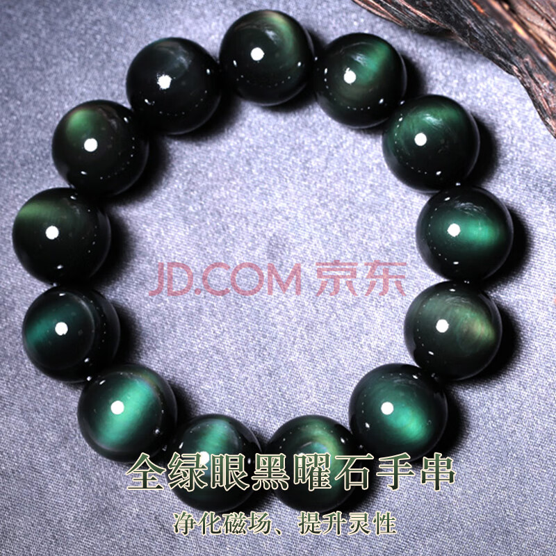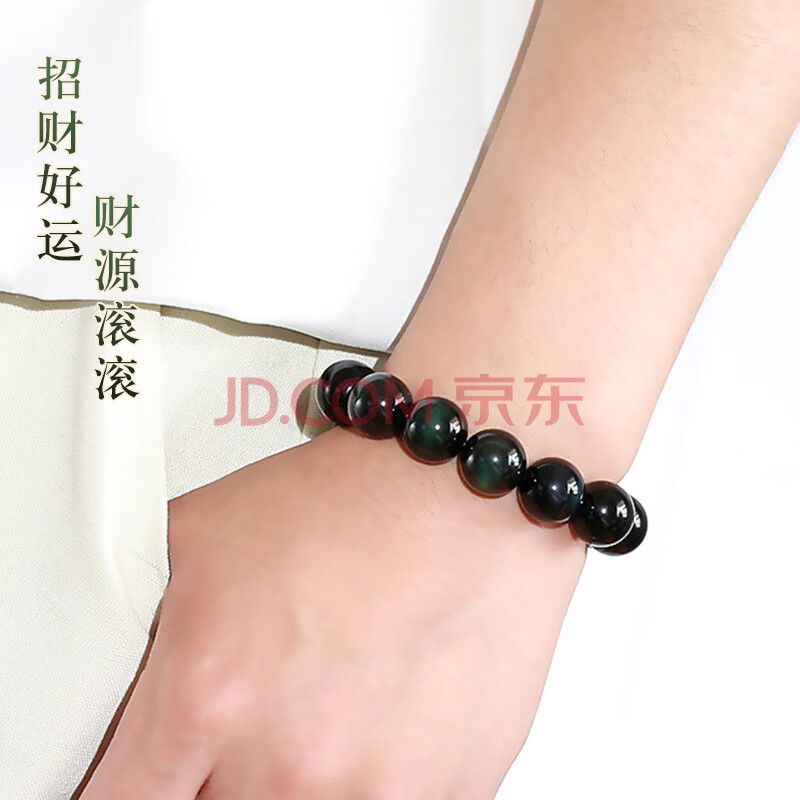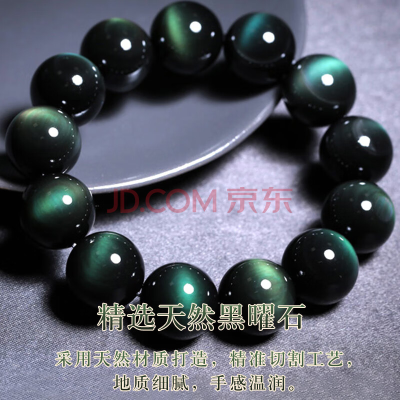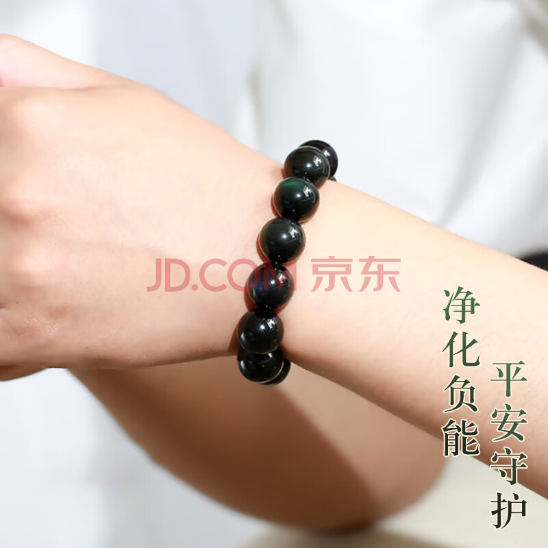 商品相册:石传百世天然黑曜石手串男士水晶玛瑙佛珠手链本命年男生长辈生日礼物第