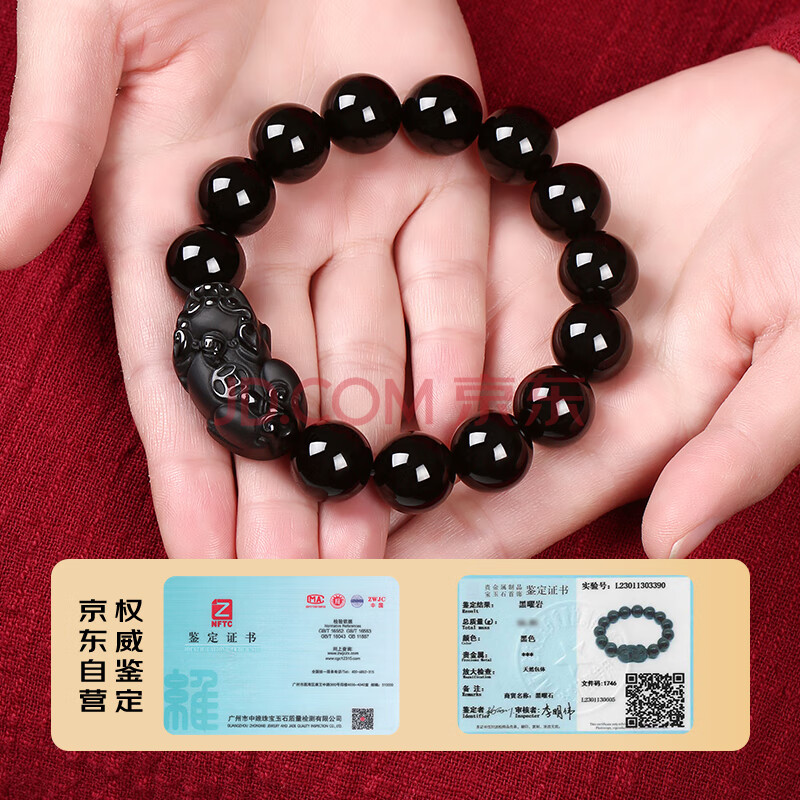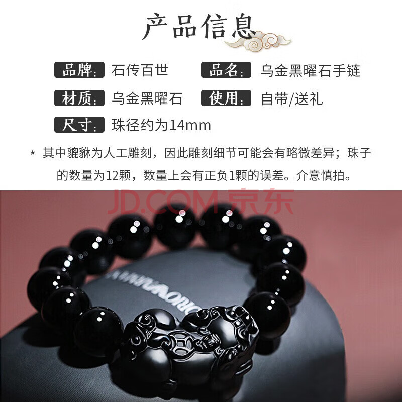 商品相册:石传百世天然黑曜石手串招财貔貅手链男款本命年送男友送老公生日礼物第