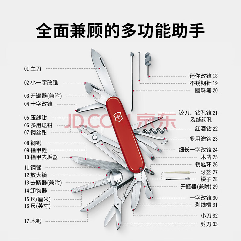 商品相册:维氏瑞士军刀英雄33项多功能水果刀刀折叠刀红色1.6795第