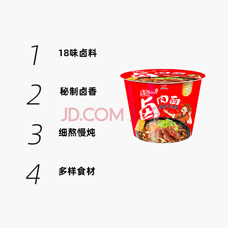 商品相册:统一来一桶 卤香牛肉味 桶面 112g*12桶 整箱装 方便面速食面泡面第