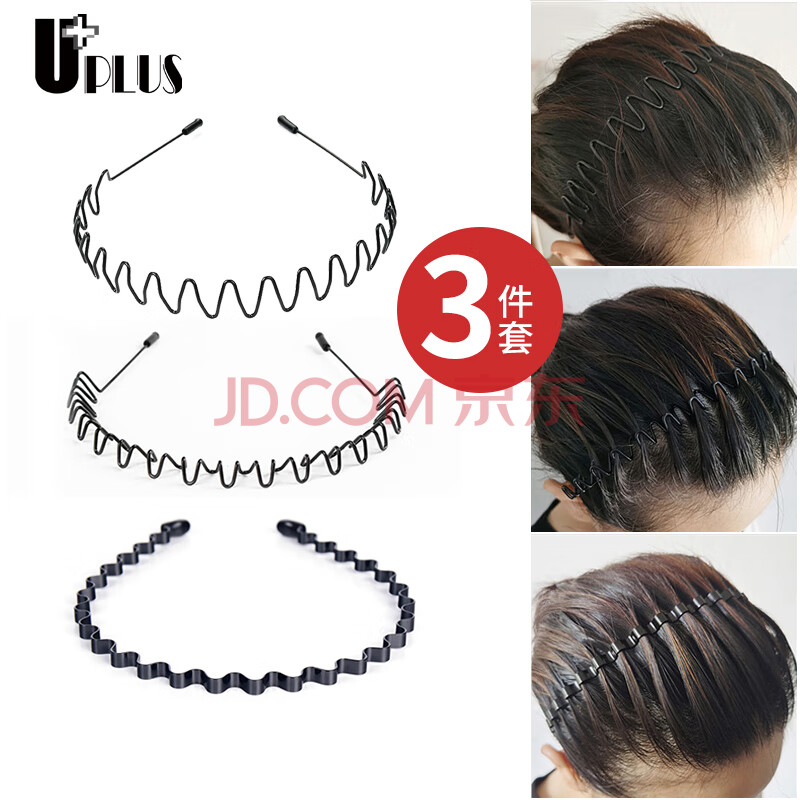 商品相册:优家(UPLUS)发箍男士隐形头箍发捆3件套洗脸发箍男士发卡碎发整理器发夹第