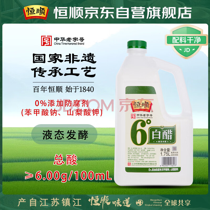 商品相册:恒顺白醋 6度 1.75L 凉拌提味炒菜腌制 清洁除垢 多用途第