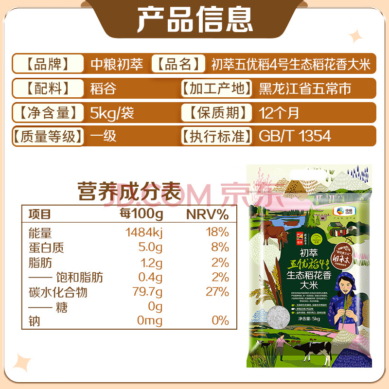 商品相册:初萃中粮当季新米 五优稻4号生态香米10斤 稻花香2号 五常产地直供第