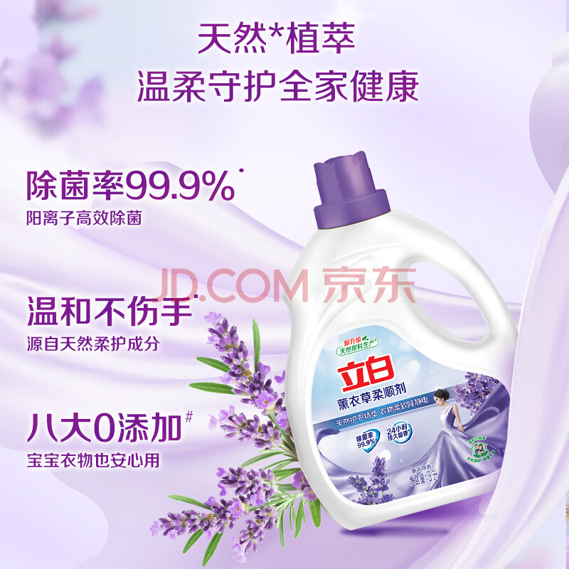 商品相册:立白衣物柔顺剂3L瓶装护衣护型防静电香味持久手洗机洗可用第1张/共5