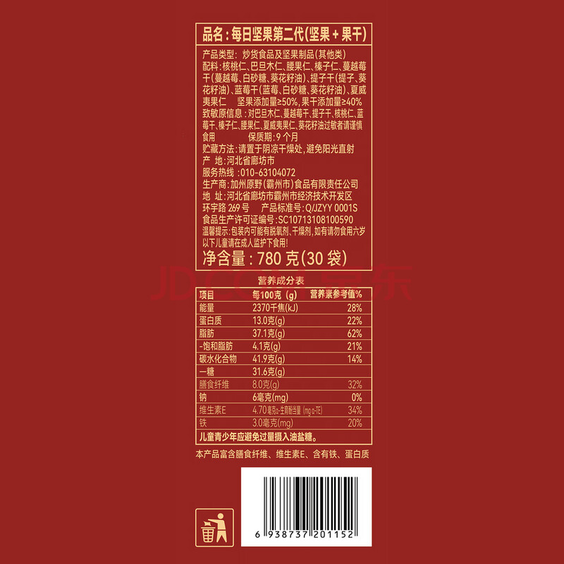 商品相册:加州原野每日坚果第二代780g/盒 坚果炒货京东自营年货干湿分离-两款随机第