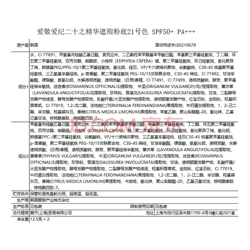 商品相册:Aekyung Age20's爱敬钻石白气垫bb霜遮瑕控油防晒粉底油皮21#12.5g*2 送女友礼物第
