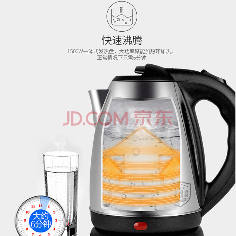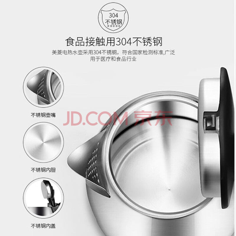 商品相册:美菱(MeiLing)烧水壶热水壶电热水壶 304不锈钢电水壶 烧开自动断电 2L大容量 MH-D2032银色第1张/共8
