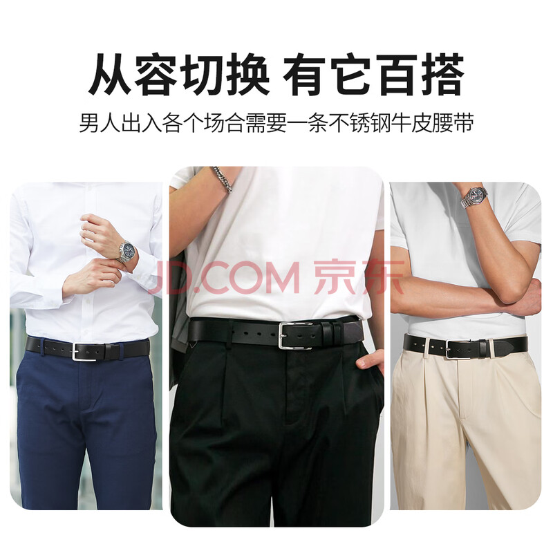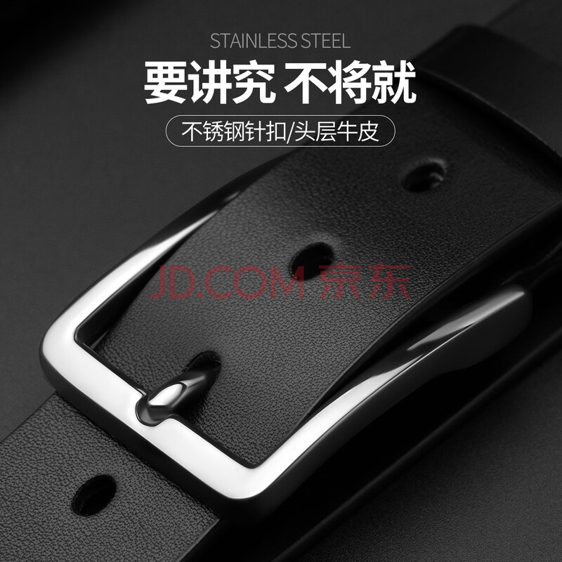 商品相册:牛当家皮带男针扣不锈钢腰带裤带头层牛皮3080礼物 雅致黑 110cm第