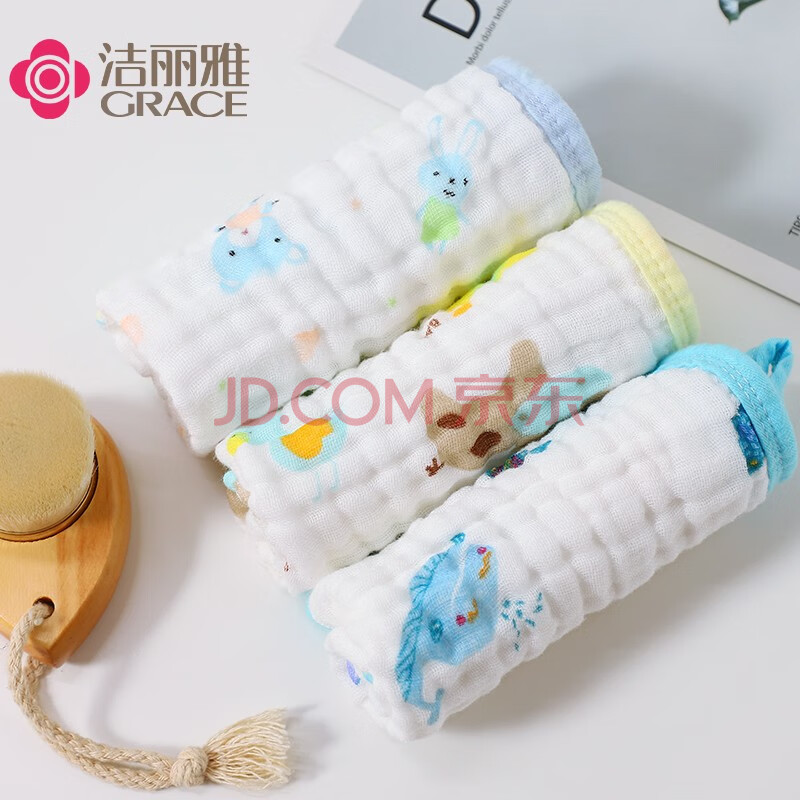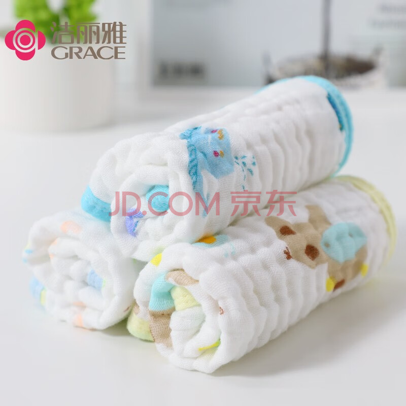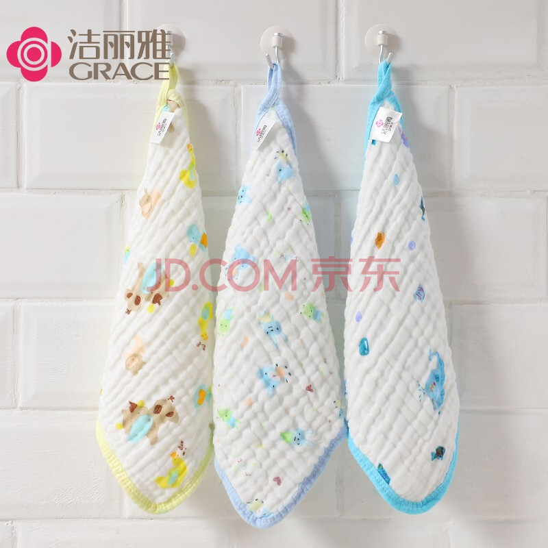 商品相册:洁丽雅(Grace)A类纯棉6层纱布口水巾3条装婴幼儿小毛巾方巾宝宝精梳棉手绢手帕第