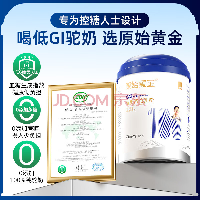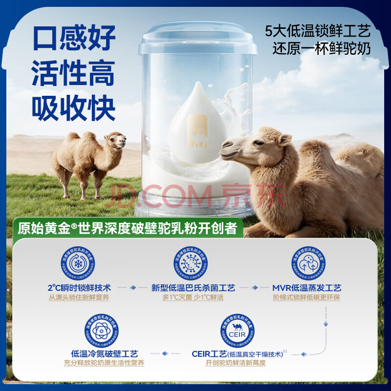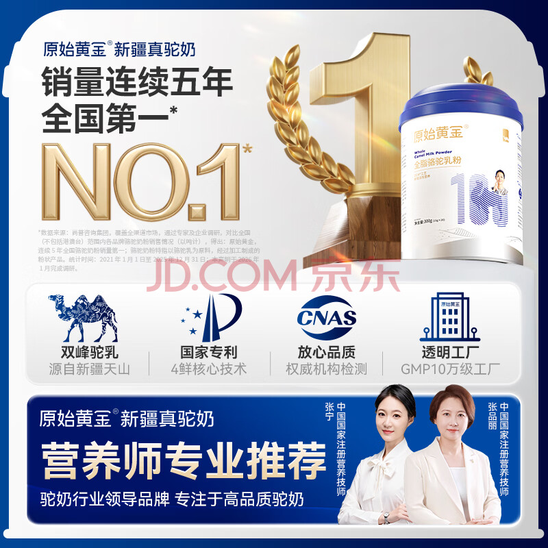 商品相册:原始黄金新疆100%纯骆驼奶粉1罐300g中老年高钙成人奶粉无蔗糖正品驼乳粉第