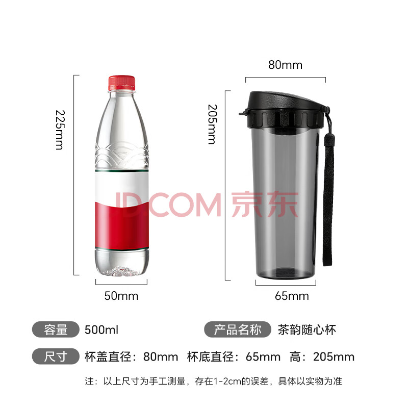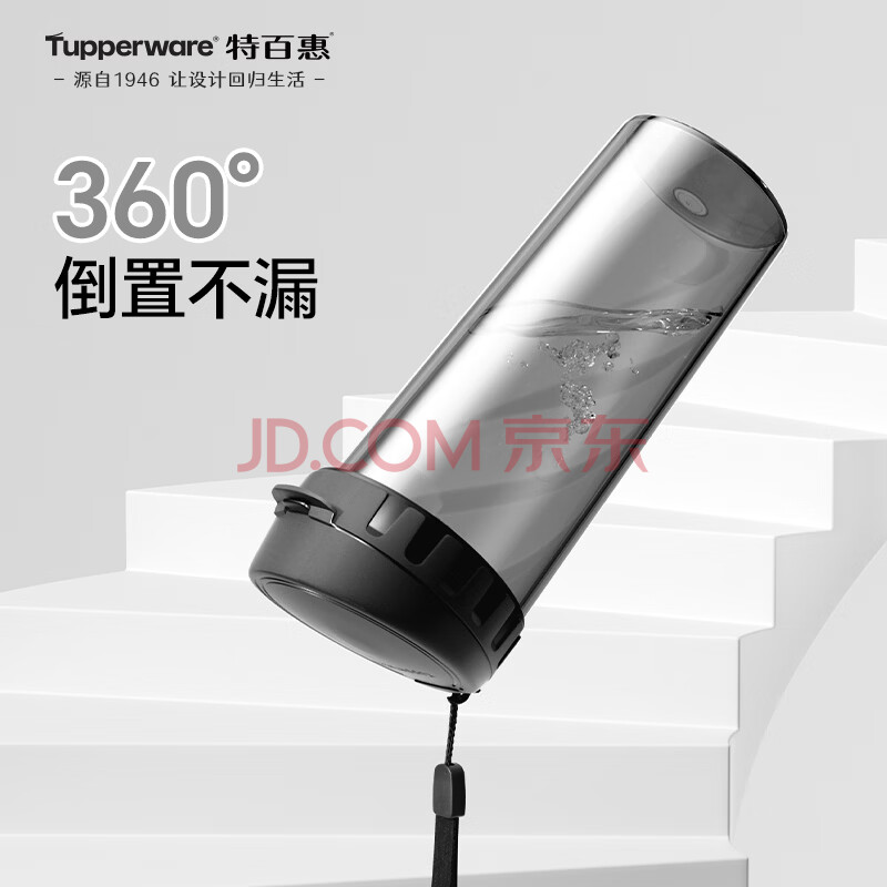 商品相册:特百惠(Tupperware)茶韵500ml塑料杯男女士学生运动水杯子大容量泡茶杯 酷炫黑第