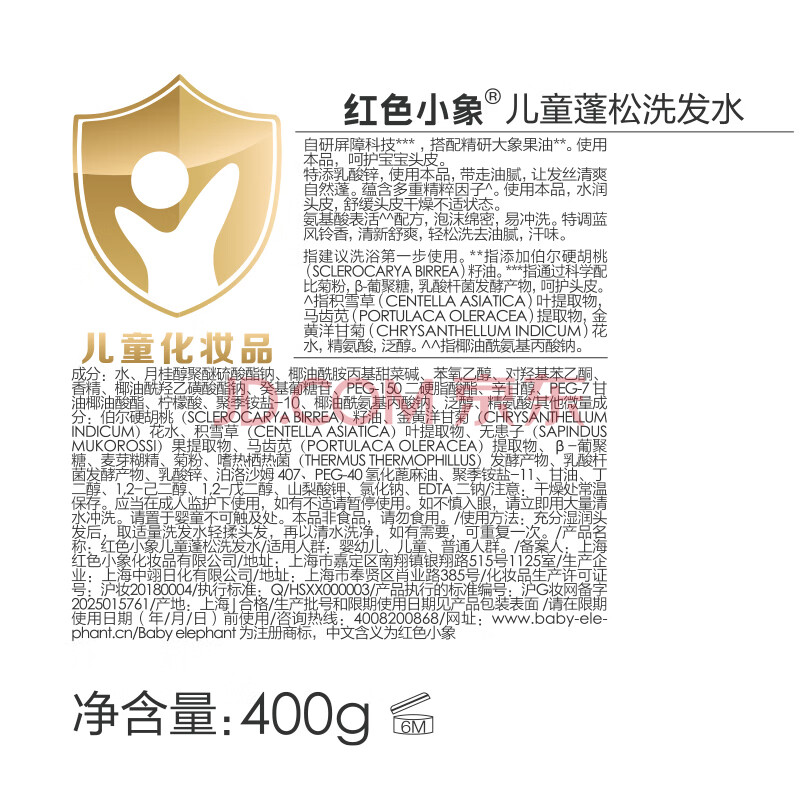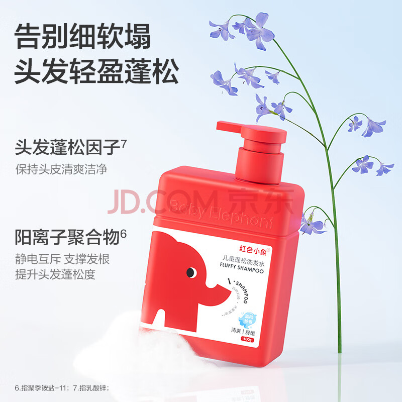商品相册:红色小象儿童蓬松洗发水 3-6-12-15岁 无硅油弱酸性 蓬松舒缓头皮400g第