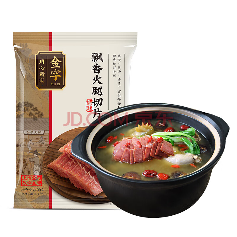 商品相册:金字金华火腿切片 浙江老字号特产无骨火腿片腊肉煲汤炒菜 400g/袋第