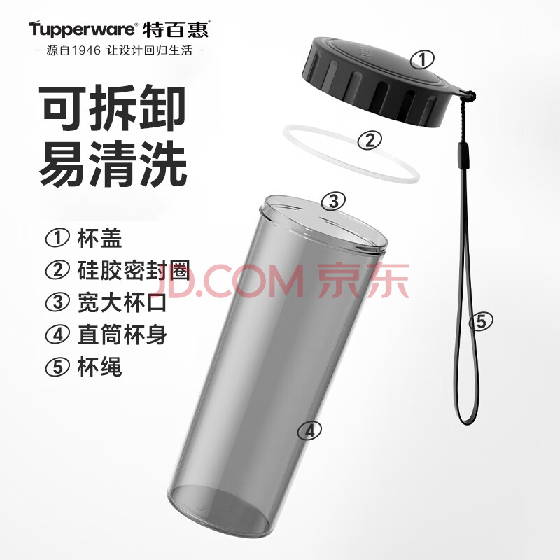 商品相册:特百惠(Tupperware)莹彩430ml塑料杯男女士学生运动水杯子大容量泡茶杯 酷炫黑第