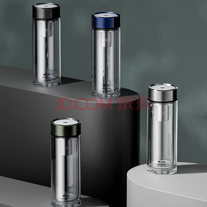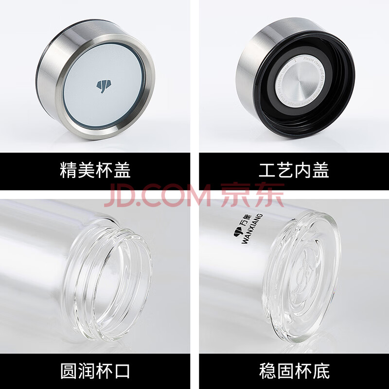 商品相册:万象(WANXIANG)双层玻璃杯商务办公V148RL车载便携男士家用370ML大容量泡茶水杯第