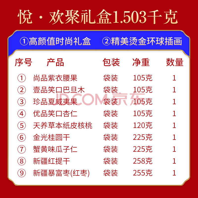 商品相册:姚生记高档坚果礼盒送礼悦欢聚1.503kg休闲零食大礼包 每日坚果炒货干果第