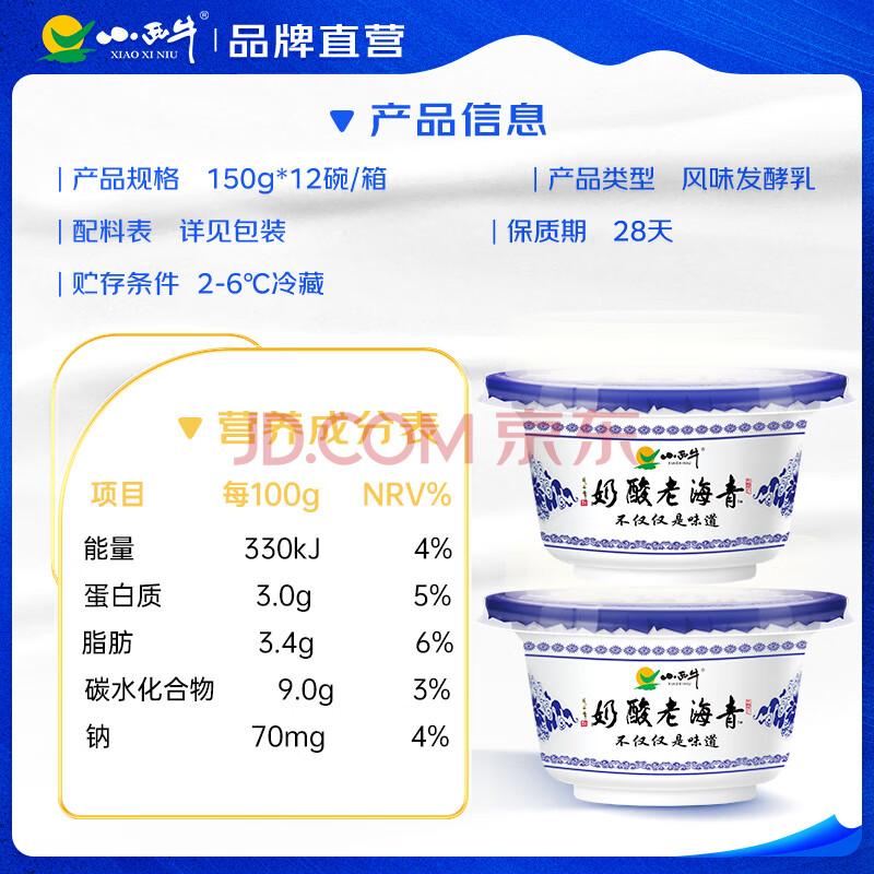 商品相册:小西牛 青藏奶源老酸奶原味老酸奶150g*12碗 源头直发第