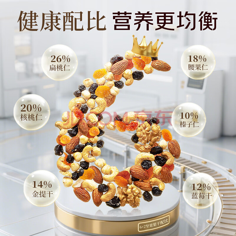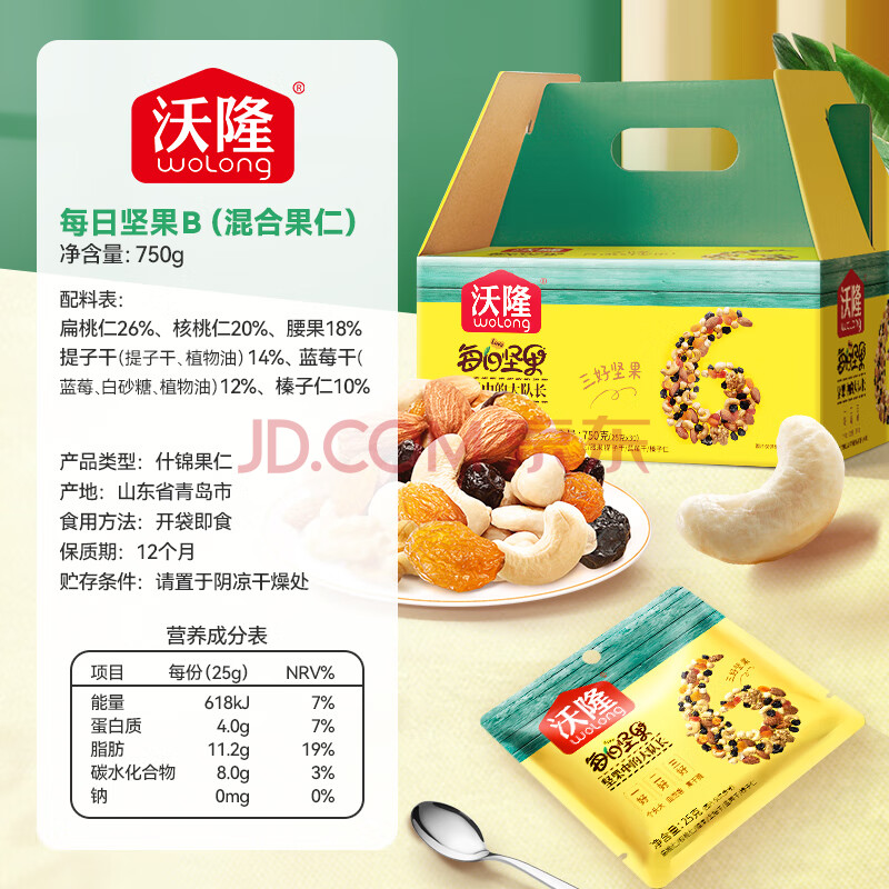 商品相册:沃隆每日坚果750g/30袋小包装儿童零食大礼包年货坚果礼盒节日礼品第1张/共8