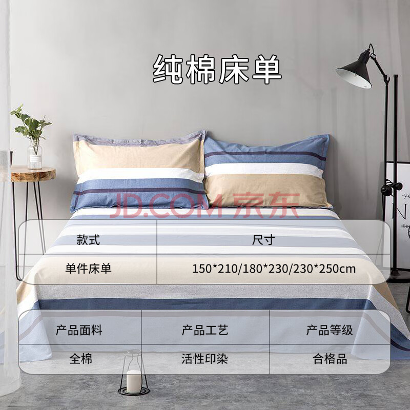 商品相册:艾薇 A类全棉床单单件纯棉床上用品双人床单 北欧时代230*250cm第