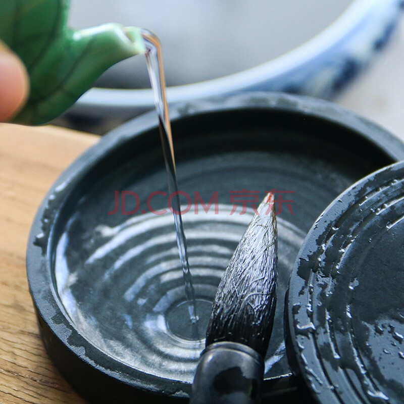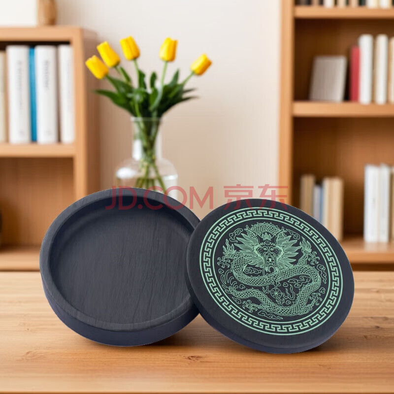 商品相册:一海堂文化 砚台文房四宝宣砚书法国画绘画墨盒墨锭原石简约歙砚素砚生日礼物4寸圆盘第1张/共7