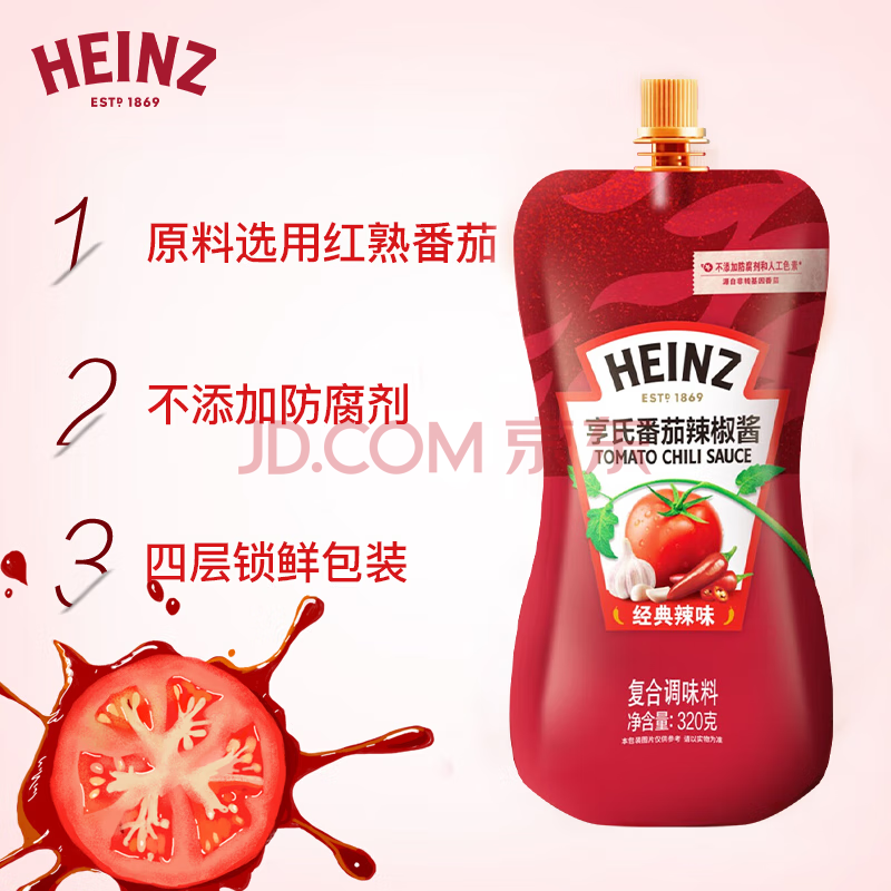 商品相册:亨氏(Heinz) 番茄辣椒酱 袋装番茄辣椒酱 薯条披萨意面酱 320g第