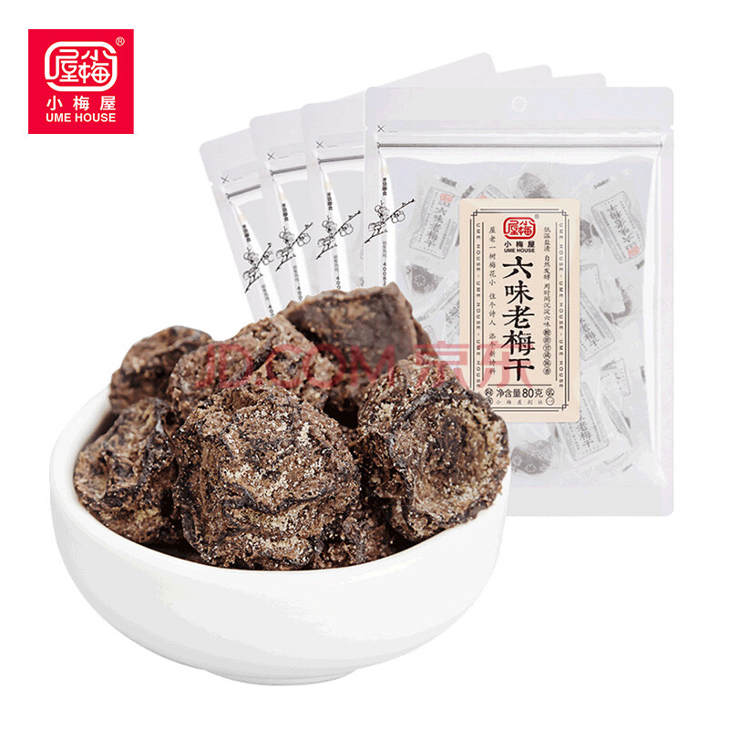 商品相册:小梅屋六味老梅干320g 话梅干蜜饯休闲零食解馋 80g*4连包第