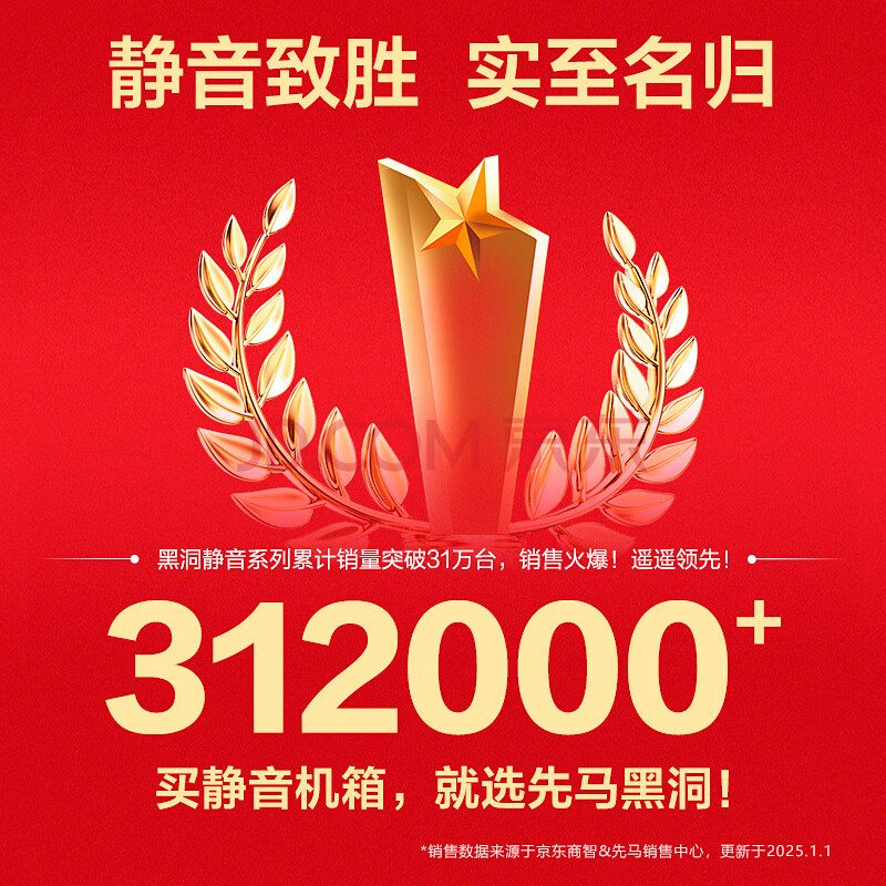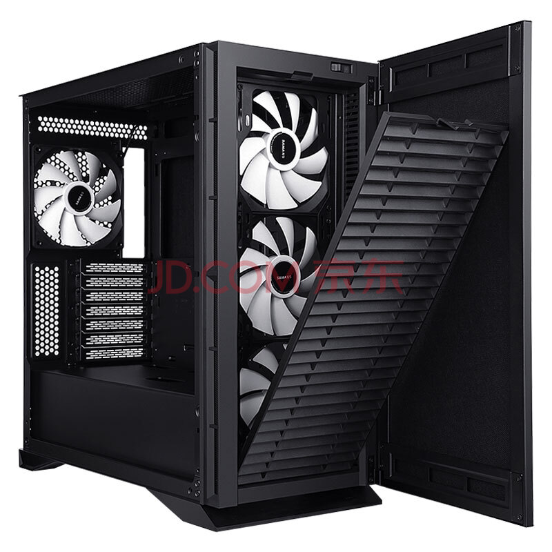 商品相册:先马(SAMA)黑洞X 吸音降噪eatx电脑机箱台式机 标配4把14cm风扇/四面吸音棉/双360水冷位/支持4090显卡竖装第