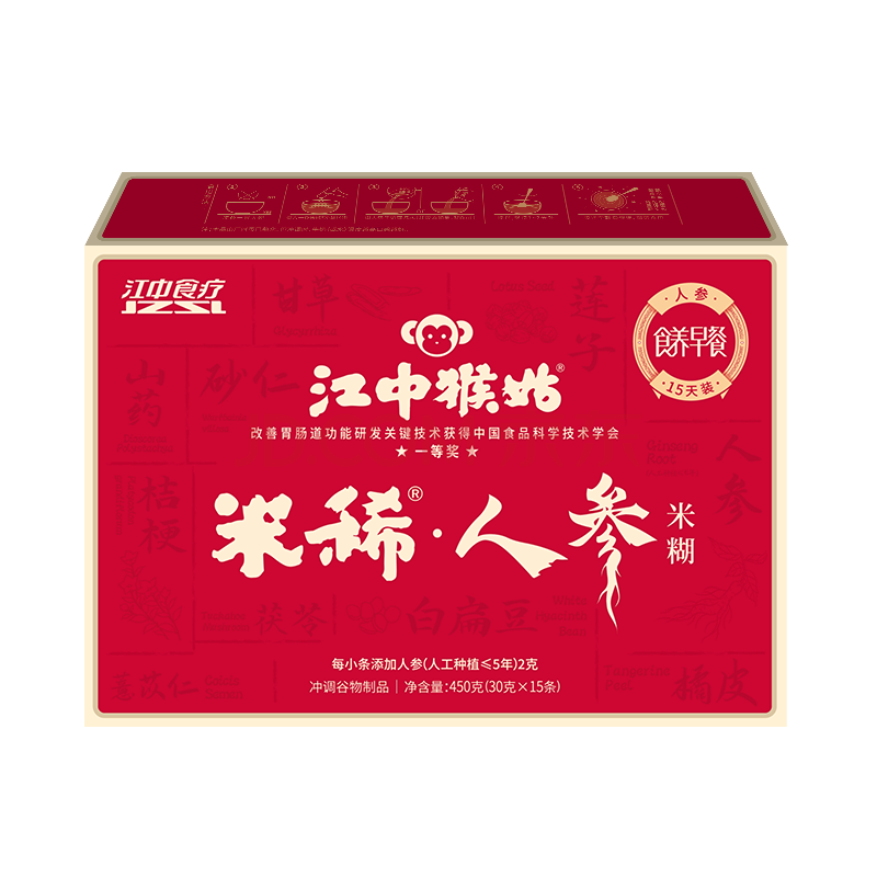 商品相册:江中猴姑米稀人参米糊15天装养胃早餐猴菇流食中老年营养长辈礼盒450g第1张/共6