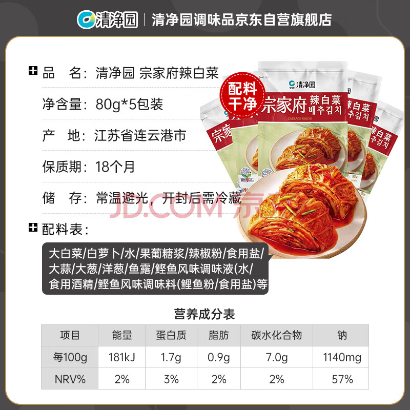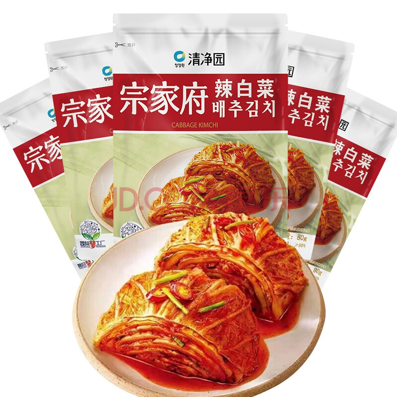 商品相册:清净园&云山半联名款 宗家府辣白菜80g*5包装 韩式风味香辣泡菜 下饭菜第