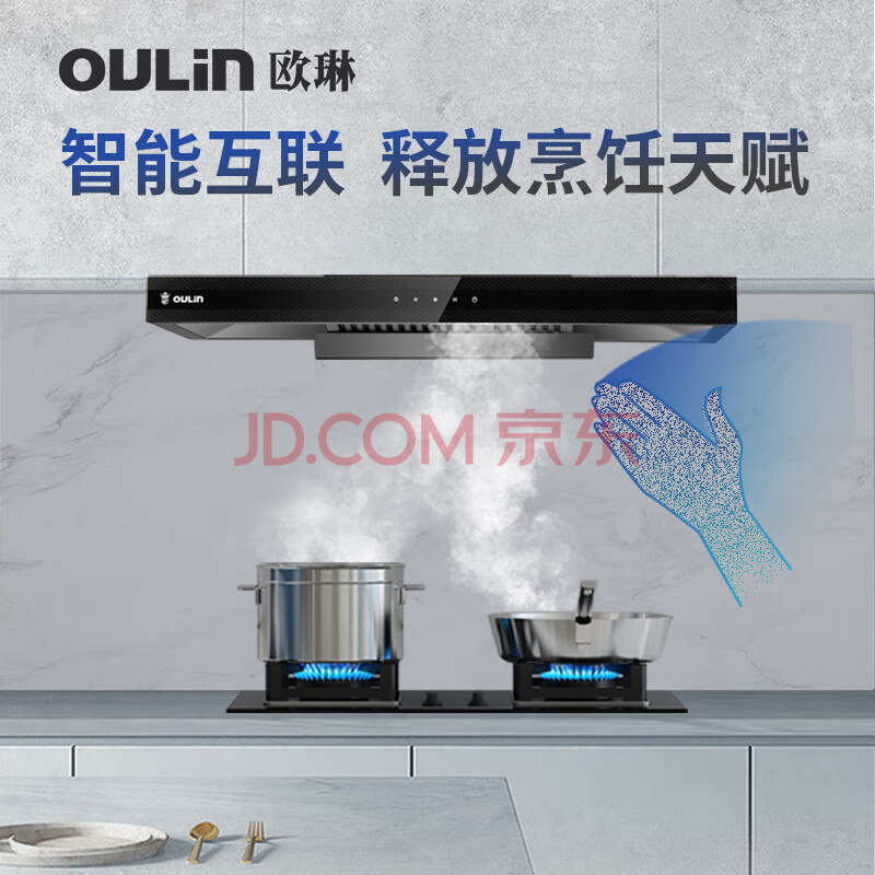 商品相册:欧琳(OULIN)抽油烟机顶吸油烟机家用欧式触控吸油烟机20立方风量大吸力挥手智控内腔免拆洗排油烟机AG10第