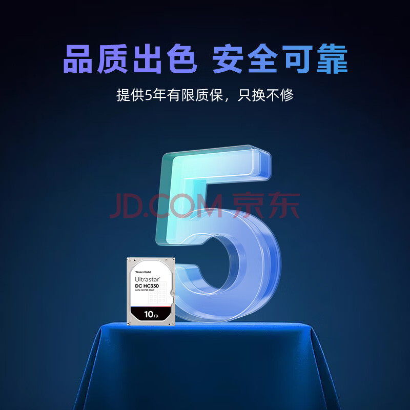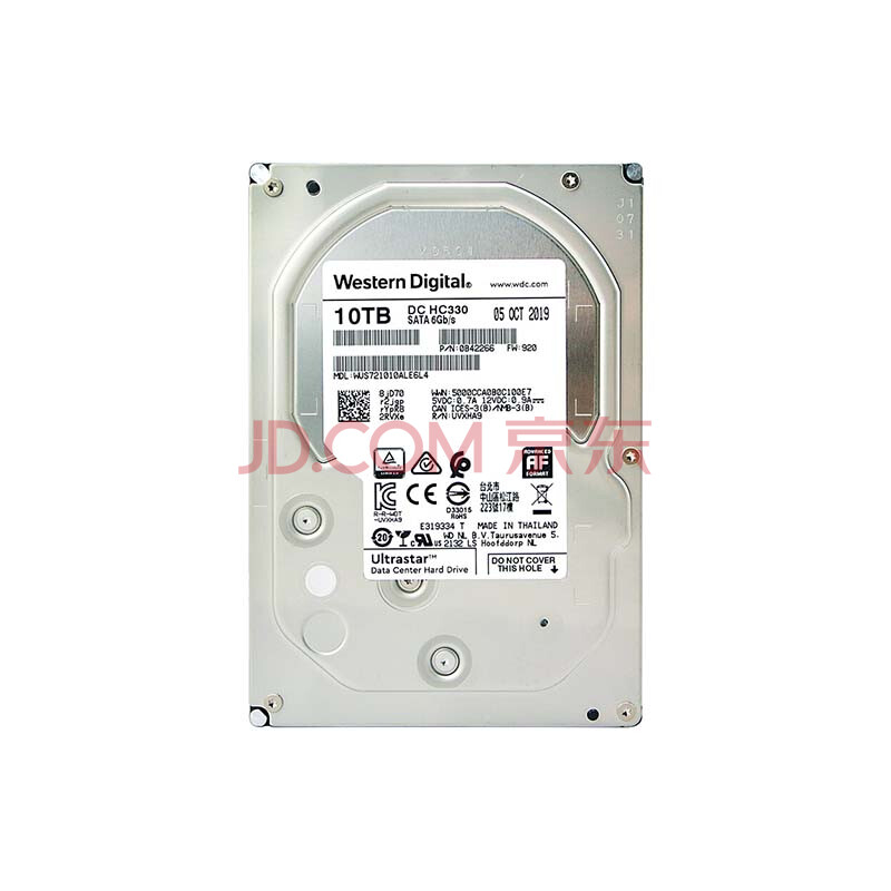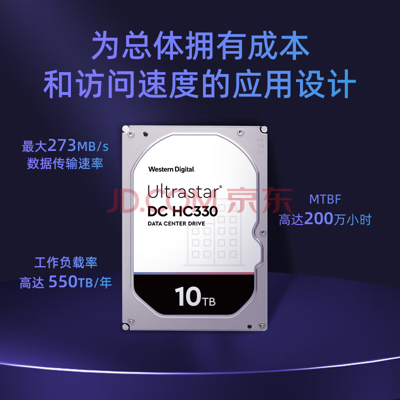 商品相册:西部数据(WD)10TB企业级机械硬盘DC HC330 SATA 7200转256MB CMR垂直 服务器硬盘 3.5英寸WUS721010ALE6L4第