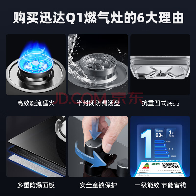 商品相册:迅达(XUNDA)燃气灶天然气灶家用双灶具灶台 嵌入式台式两用 4.5KW旋流火灶一级能效 Q1-天然气第