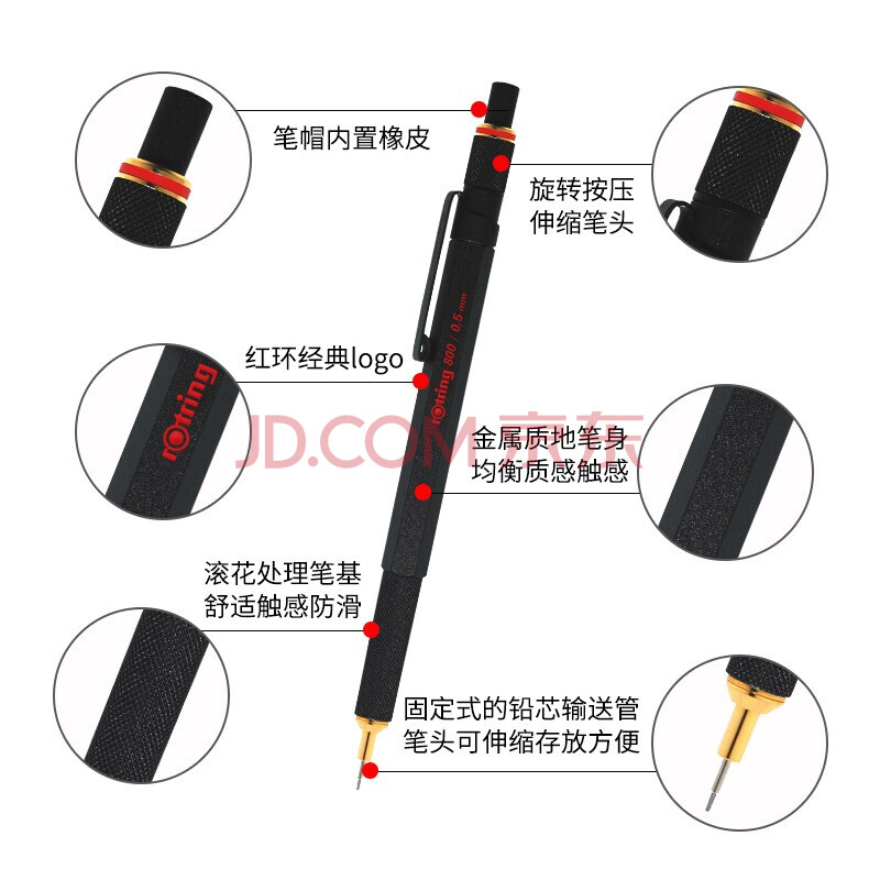 商品相册:红环(rotring)自动铅笔0.5mm 德国高颜值绘图工具-800系列黑色单支礼盒装 开工礼物第1张/共3