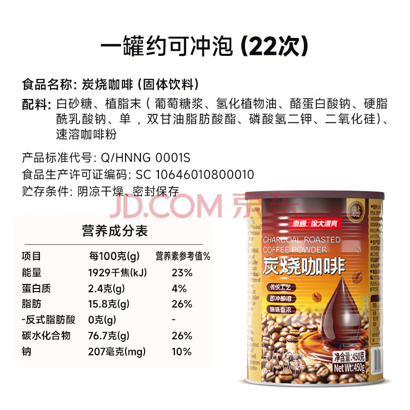 商品相册:南国 炭烧咖啡450g/罐 三合一速溶咖啡粉 海南特产第
