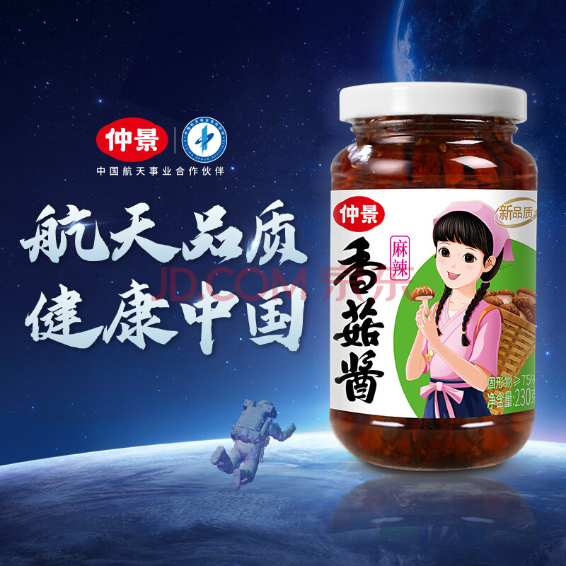 商品相册:仲景 麻辣味香菇酱230g 拌饭拌面夹馍下饭酱菜蘑菇调味酱第