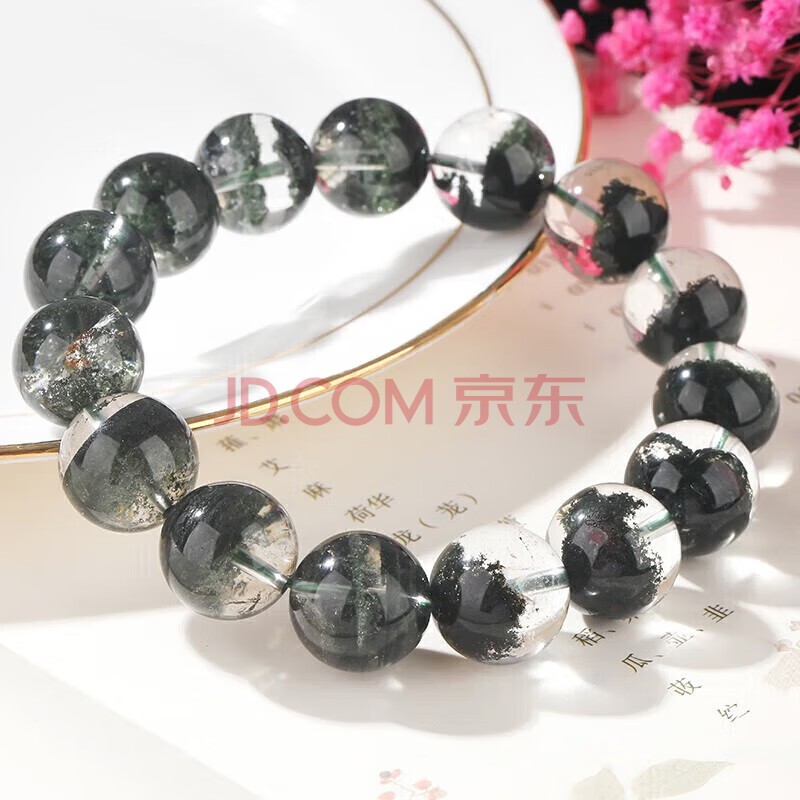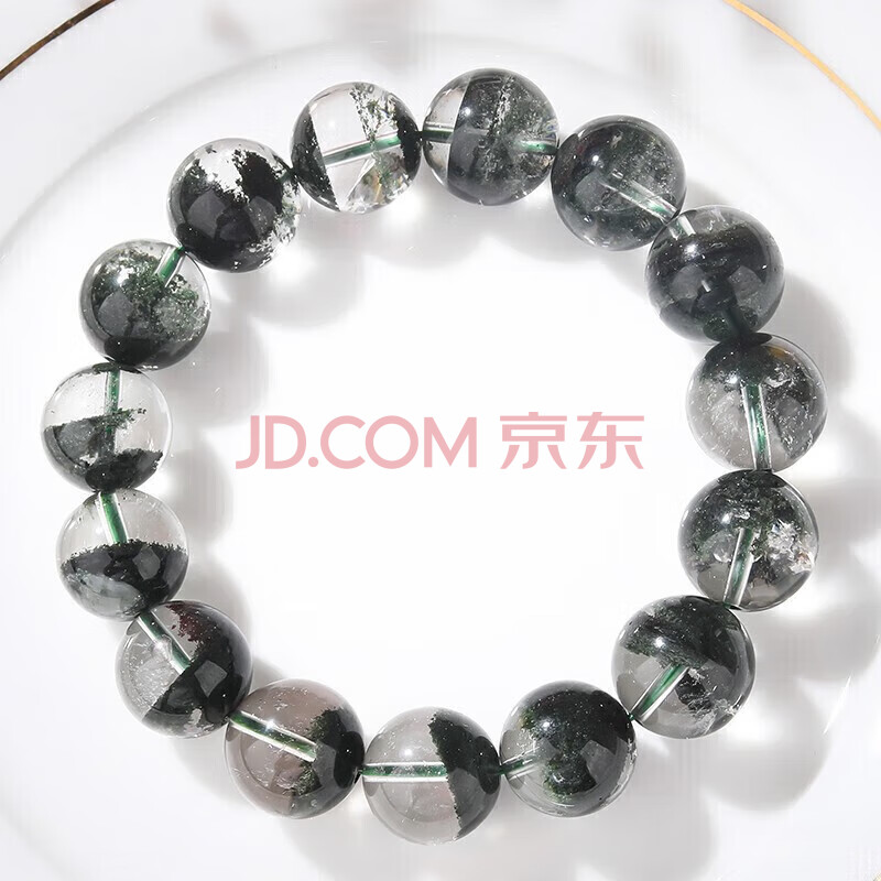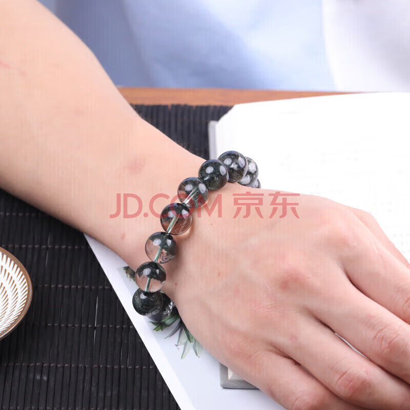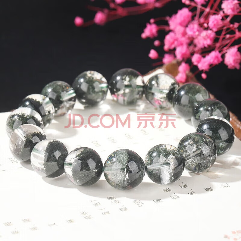 商品相册:石玥珠宝精品14-15mm天然绿幽灵手串本命年转运珠手链男女士款 水晶玛瑙第