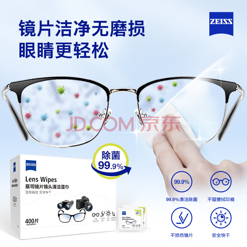 商品相册:蔡司 镜头镜片清洁湿巾400片*1盒擦镜纸眼镜布擦眼镜 清洁湿巾 第