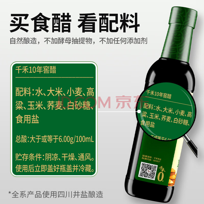 商品相册:千禾10年窖醋6度 500mL 【0添加】纯粮酿造典藏老陈醋凉拌饺子食用第