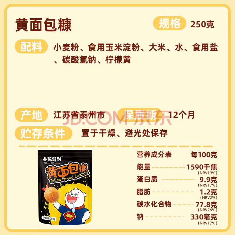 商品相册:小熊驾到黄面包糠250g*2袋 家用烧烤料天妇罗炸粉炸鸡腿鸡翅鸡排油炸裹粉第