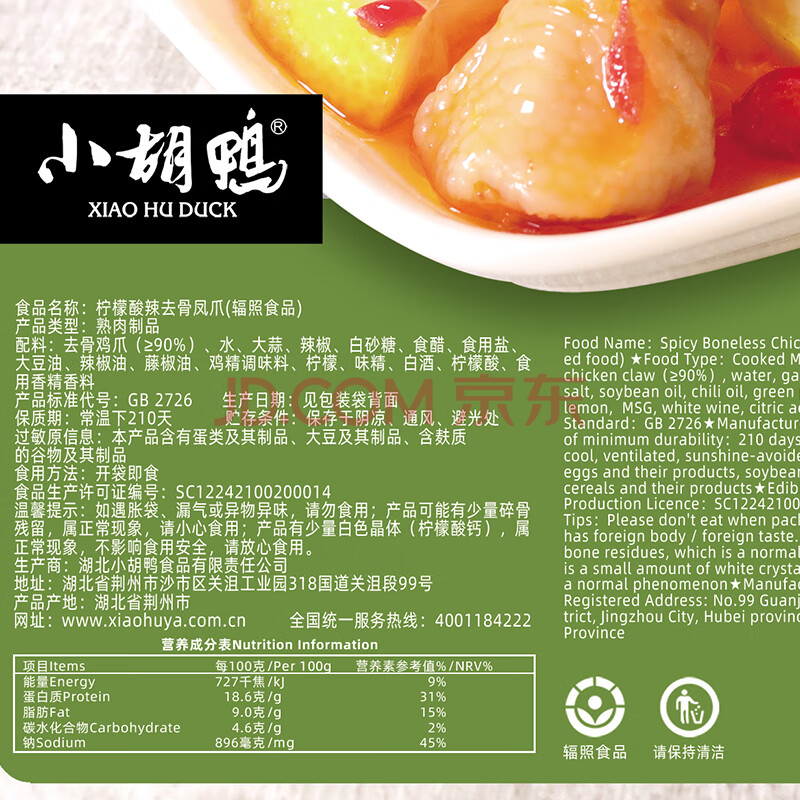 商品相册:小胡鸭柠檬酸辣去骨凤爪90g无骨鸡爪脱骨休闲零食礼包肉干卤味小吃食品第