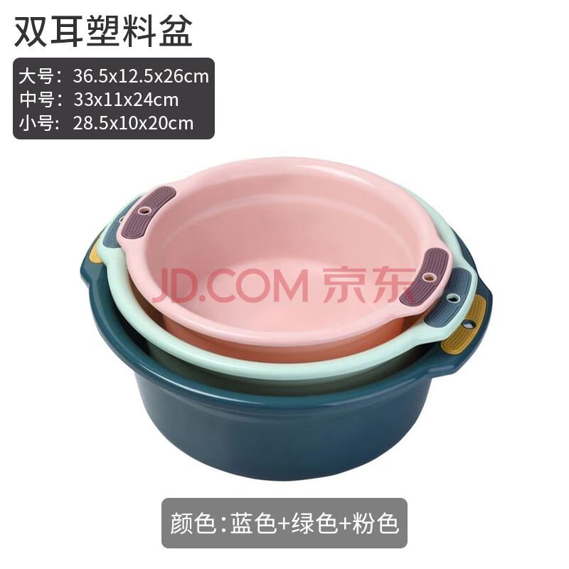 商品相册:富居双耳洗脸盆3只装加厚学生宿舍洗衣盆洗菜盆(大中小号套装)第