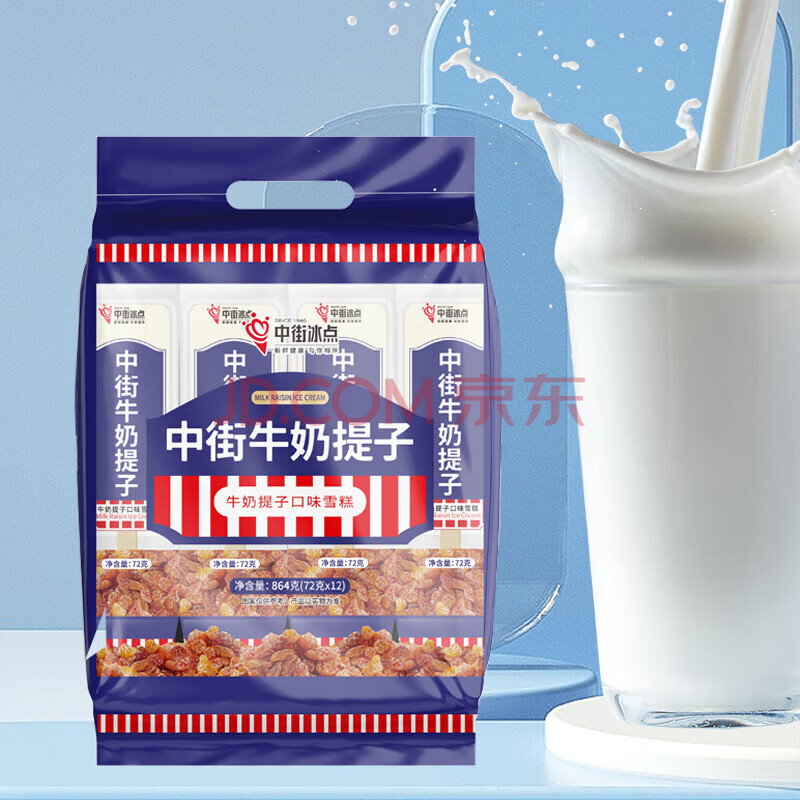 商品相册:中街冰点 牛奶提子口味雪糕 72克*12支 冰淇淋冷饮冰激凌第1张/共8